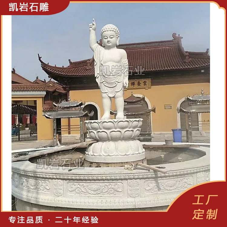 太子佛,又称宝宝佛,是释迦牟尼在八相成道中的一相。据佛经记载,释迦牟尼出生时,向四方各行七步,步步生莲,一手指天一手指地,说偈“天上地下,唯吾独尊”。 一尊石雕太子佛,看似简约,实则每一处细节都暗藏巧思,从形象设计到材质工艺,都彰显着信仰与匠人的双重坚守。造像面相方圆端庄,以展现佛之慈祥。五官刻画生动立体,额际高广,眼睑低垂,目光下敛,双眉之间有白毫相,眉弓与鼻山根相连,厚...
