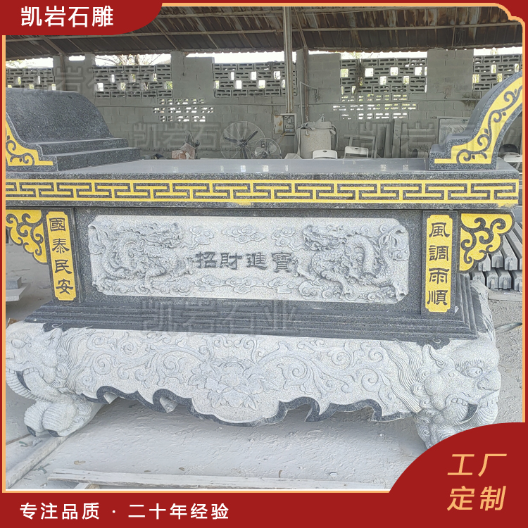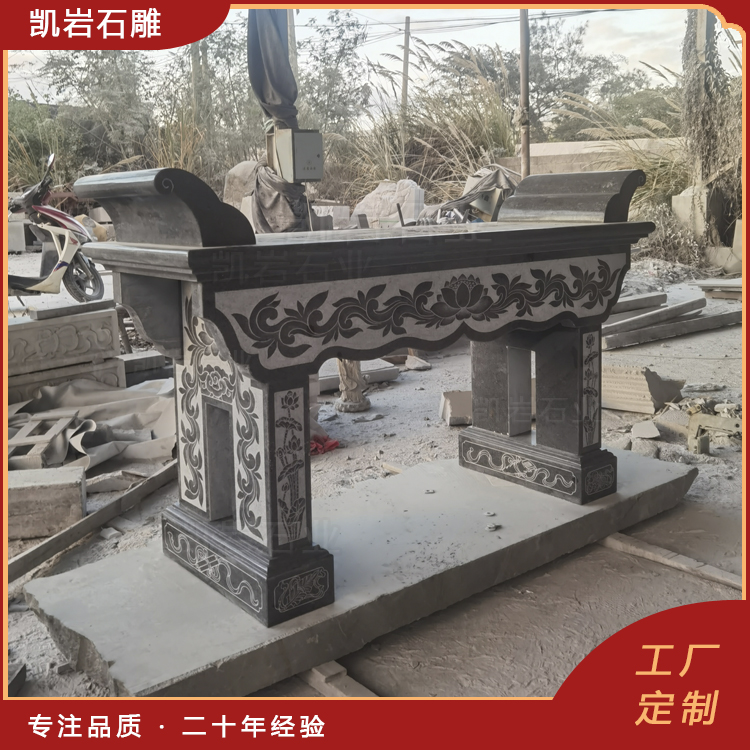 泉州凯岩石业制作的石雕供桌,采用优质的石质精雕细琢而成,善用千年文化雕凿工艺的研究、传承、融合和发扬,使石雕作品承载艺术文化、体现更多社会价值。 【相关阅读】