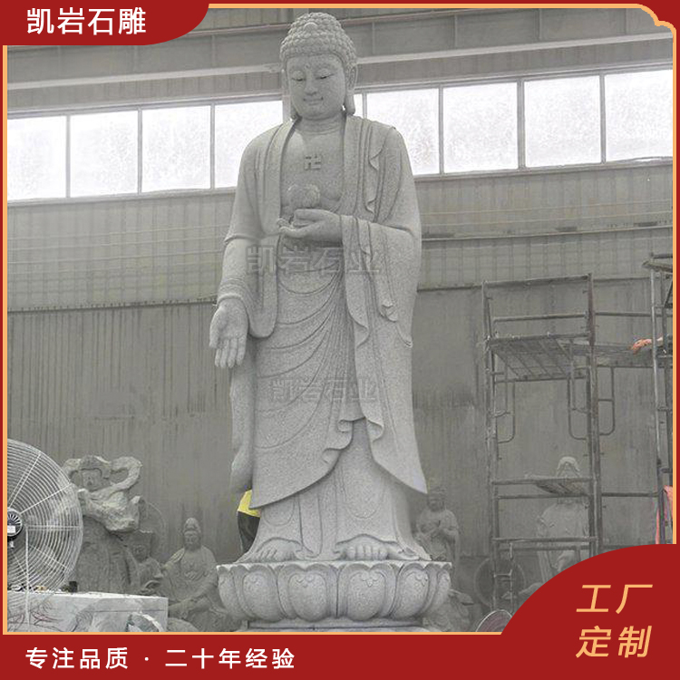 泉州凯岩石业制作的石雕阿弥陀佛,采用优质的石质精雕细琢而成,善用千年文化雕凿工艺的研究、传承、融合和发扬,使石雕作品承载艺术文化、体现更多社会价值。