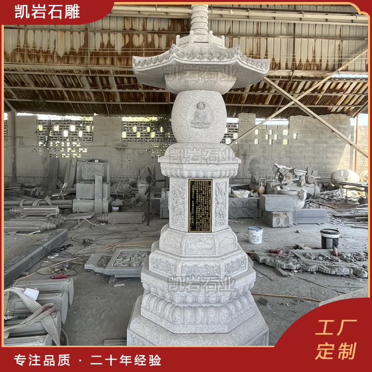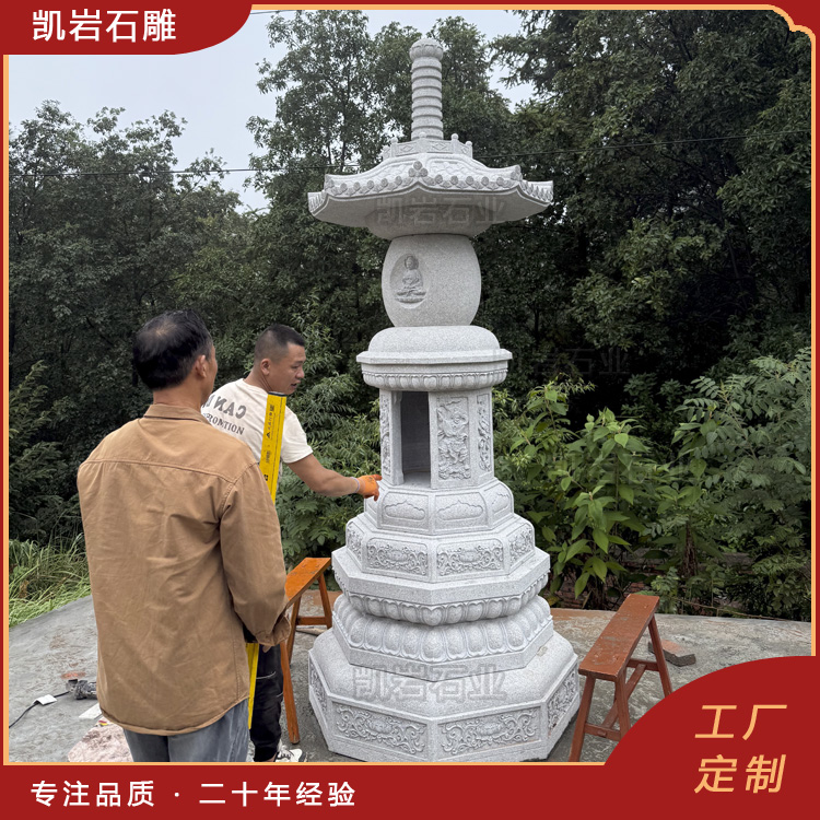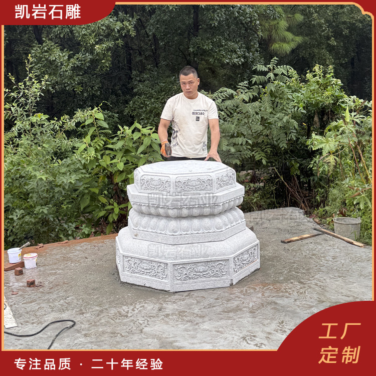 ![]() 石雕舍利塔是佛教寺庙中常见的建筑之一,主要用于供奉佛陀或高僧舍利的,具有重要的宗教和文化意义。舍利是佛陀或圣贤遗体火化后残留下来的部分,通常被视为圣物,象征着智慧。下面让我们一起来欣赏一下凯岩石业设计制作安装的石雕舍利塔。