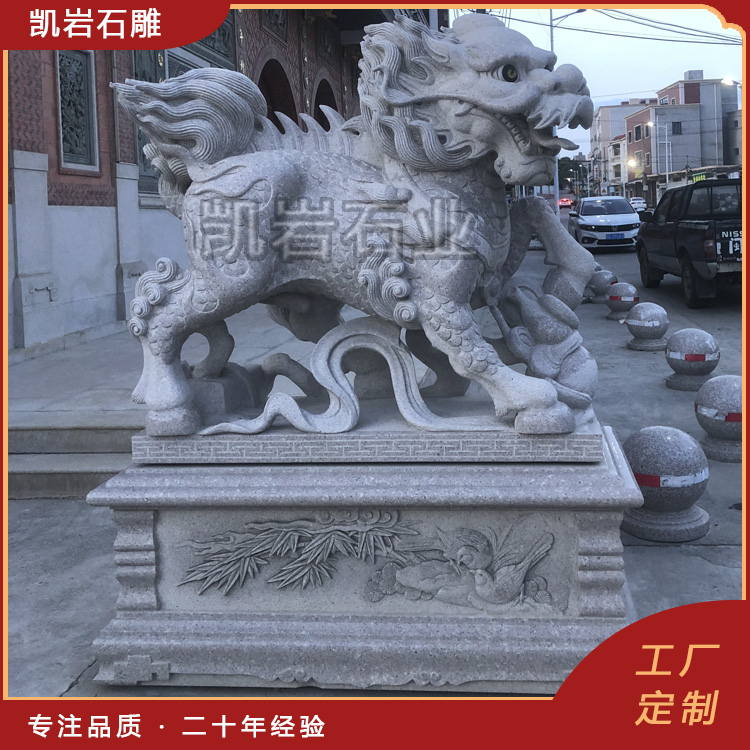 泉州凯岩石业制作的石雕麒麟,采用优质的石质精雕细琢而成,善用千年文化雕凿工艺的研究、传承、融合和发扬,使石雕作品承载艺术文化、体现更多社会价值。 【相关阅读】