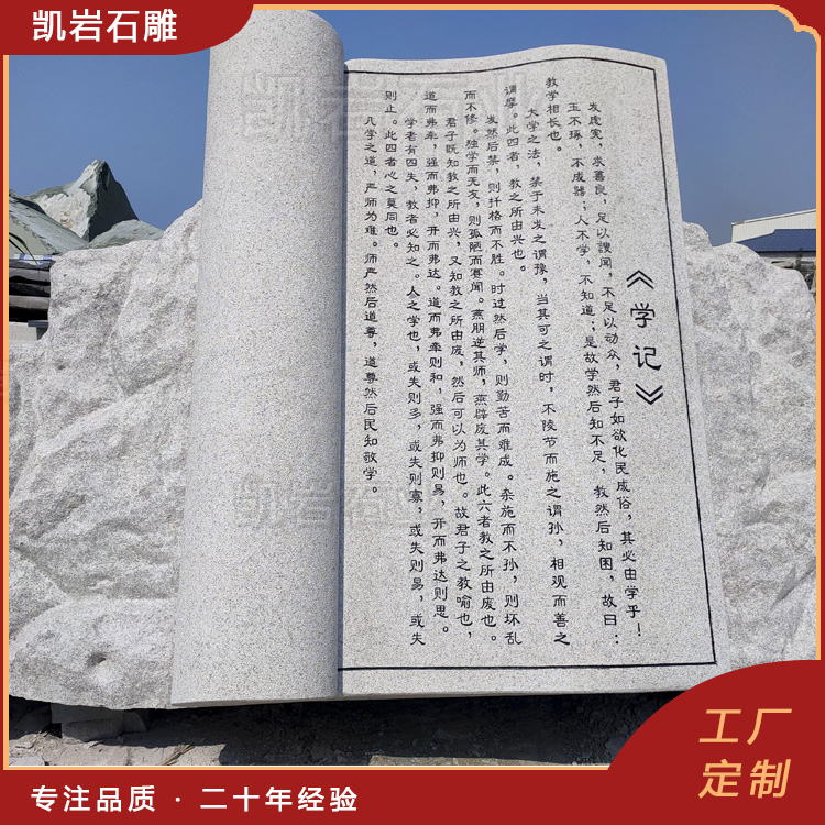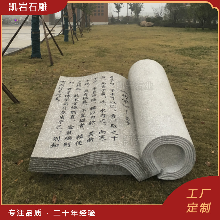 泉州凯岩石业制作的石雕书本,采用优质的石质精雕细琢而成,善用千年文化雕凿工艺的研究、传承、融合和发扬,使石雕作品承载艺术文化、体现更多社会价值。 【相关阅读】