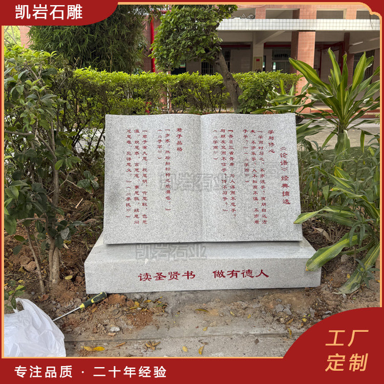 石雕书本是校园中常见的一种雕塑,在校园中扮演着非常重要的角色,它可以作为校园文化的代表和象征,也展现出学校的历史和文化底蕴。它常常被放置在校园的中心区域、图书馆前、教学楼旁等场所,以彰显学校的文化氛围。下面给大家分享一些石雕书本图片,供大家欣赏。