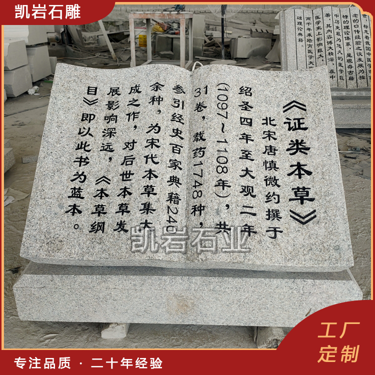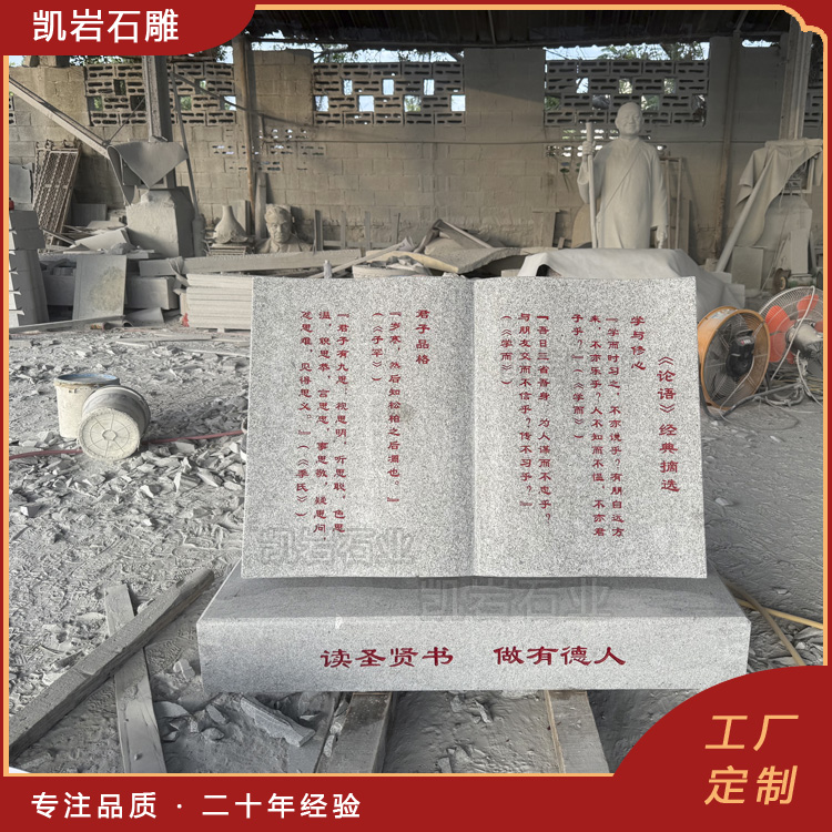 泉州凯岩石业制作的石雕书本,采用优质的石质精雕细琢而成,善用千年文化雕凿工艺的研究、传承、融合和发扬,使石雕作品承载艺术文化、体现更多社会价值。 【相关阅读】