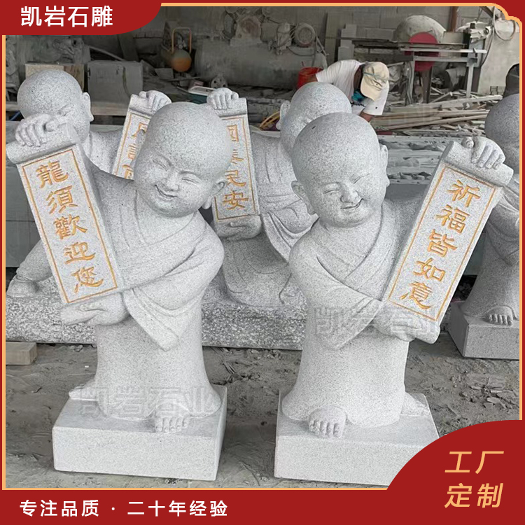 泉州凯岩石业制作的石雕小沙弥,采用优质的石质精雕细琢而成,善用千年文化雕凿工艺的研究、传承、融合和发扬,使石雕作品承载艺术文化、体现更多社会价值。