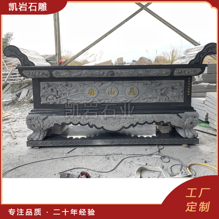 泉州凯岩石业制作的石雕供桌,采用优质的石质精雕细琢而成,善用千年文化雕凿工艺的研究、传承、融合和发扬,使石雕作品承载艺术文化、体现更多社会价值。