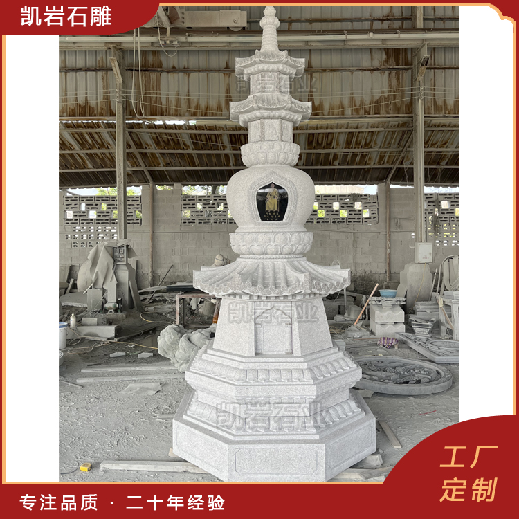 泉州凯岩石业制作的石雕舍利塔,采用优质的石质精雕细琢而成,善用千年文化雕凿工艺的研究、传承、融合和发扬,使石雕作品承载艺术文化、体现更多社会价值。
