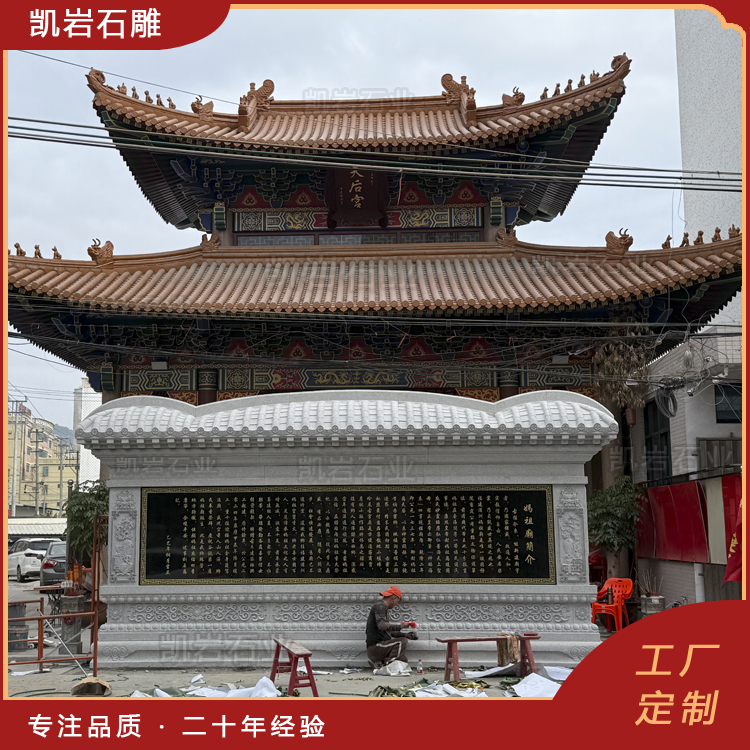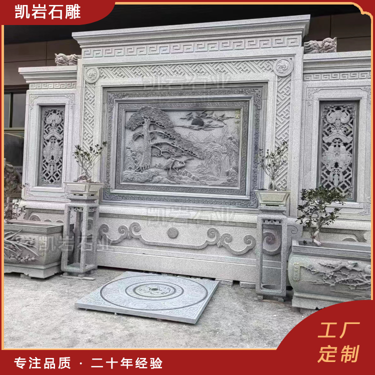 泉州凯岩石业制作的石雕照壁,采用优质的石质精雕细琢而成,善用千年文化雕凿工艺的研究、传承、融合和发扬,使石雕作品承载艺术文化、体现更多社会价值。
