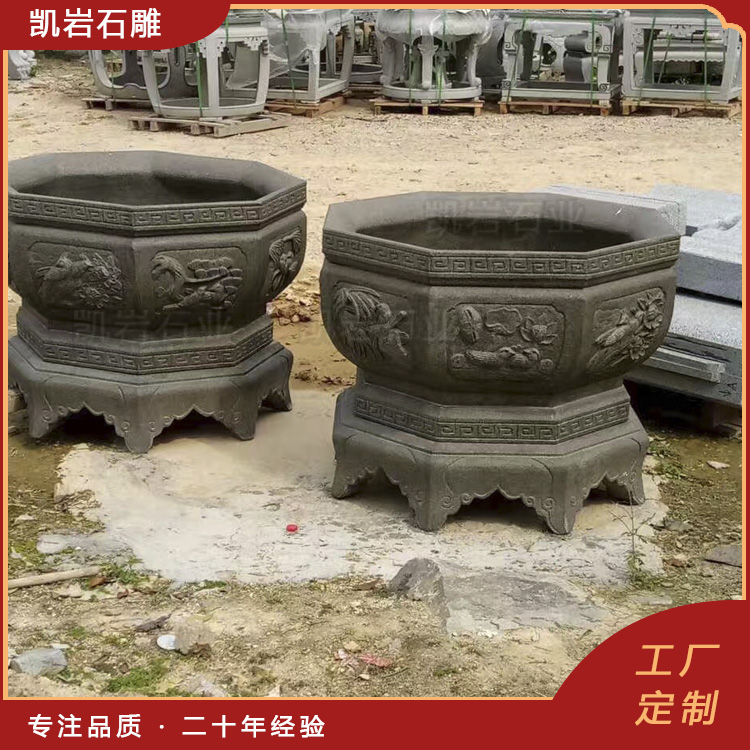 石雕花钵,以其独特的造型和质感,成为景观设计中不可或缺的亮点。无论是作为园林景观的点缀,还是家居装饰的亮点,它都能为空间增添一份自然与艺术的魅力。以下是一些石雕花钵图片,供大家欣赏。