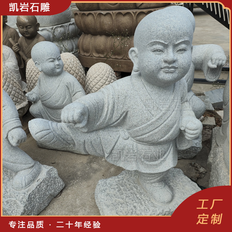 石雕小沙弥是我们生活中常见的一种石雕艺术品,常被摆放在寺庙、景区、公园等场所。这些石雕小沙弥作品,不仅可以增加环境的趣味性,还能带来一种禅意和宁静的感觉。