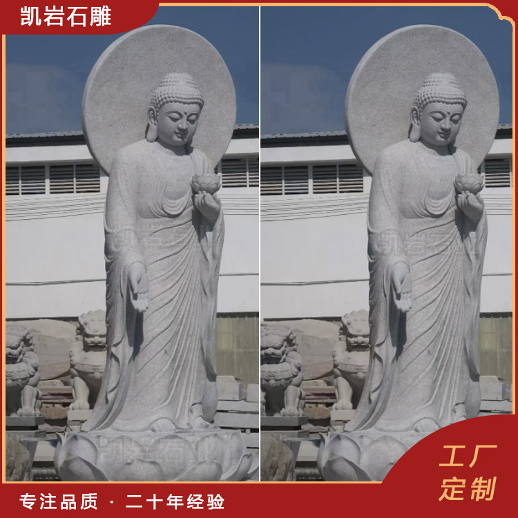 泉州凯岩石业制作的石雕阿弥陀佛,采用优质的石质精雕细琢而成,善用千年文化雕凿工艺的研究、传承、融合和发扬,使石雕作品承载艺术文化、体现更多社会价值。