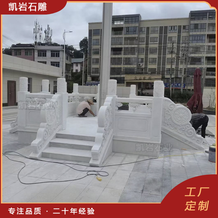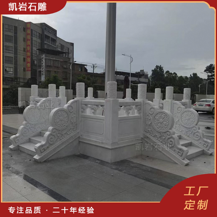 泉州凯岩石业制作的石雕旗台石栏杆,采用优质的石质精雕细琢而成,善用千年文化雕凿工艺的研究、传承、融合和发扬,使石雕作品承载艺术文化、体现更多社会价值。