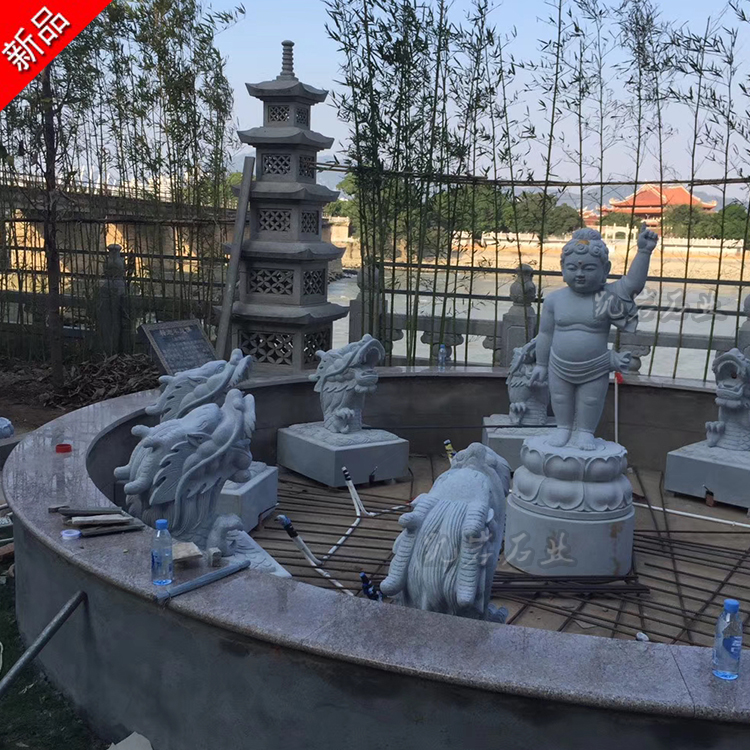 ![]() 太子佛的形象,源自释迦牟尼佛诞生的佛传故事:古印度迦毗罗卫国净饭王之子乔达摩・悉达多,从母亲摩耶夫人右胁降生后,无需扶持,向四方各走七步,步步生莲。诞生后一手指天、一手指地,宣言 “天上天下,唯我独尊”,寓意众生本具佛性,人人皆可觉悟。诸天感应,九龙吐水,冷暖香水沐浴太子金身,这也是佛教浴佛节(农历四月初八)的核心起源。 石雕太子佛,便是对这一神圣诞生时刻的立体定格,融合佛教经典、中华石雕工艺与民俗信仰,是兼具宗教内涵、艺术价值与吉祥寓意的经典石雕题材。