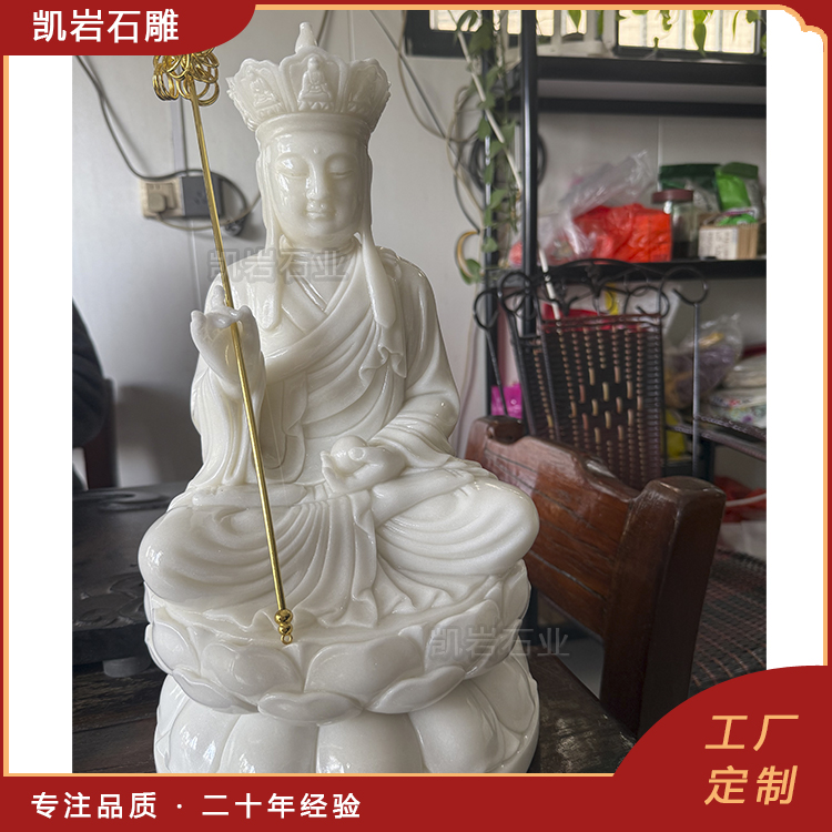 汉白玉石雕地藏王菩萨像:玉琢金身,愿渡众生