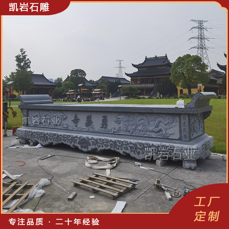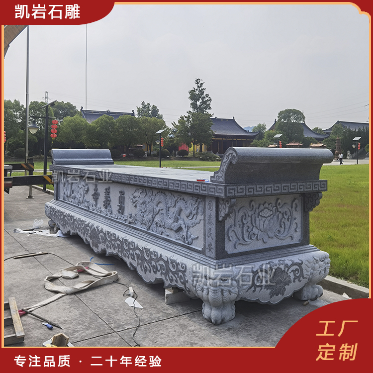 泉州凯岩石业制作的石雕供桌,采用优质的石质精雕细琢而成,善用千年文化雕凿工艺的研究、传承、融合和发扬,使石雕作品承载艺术文化、体现更多社会价值。
