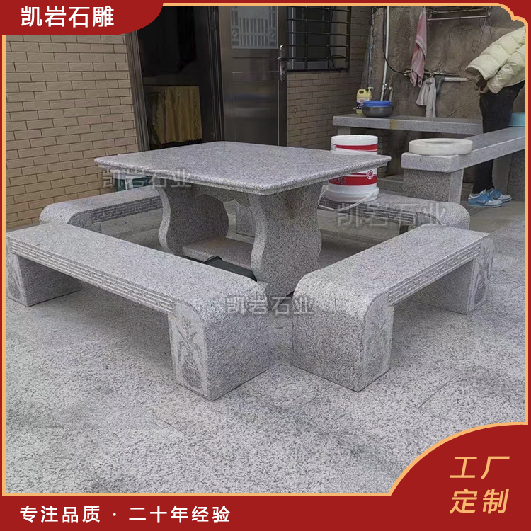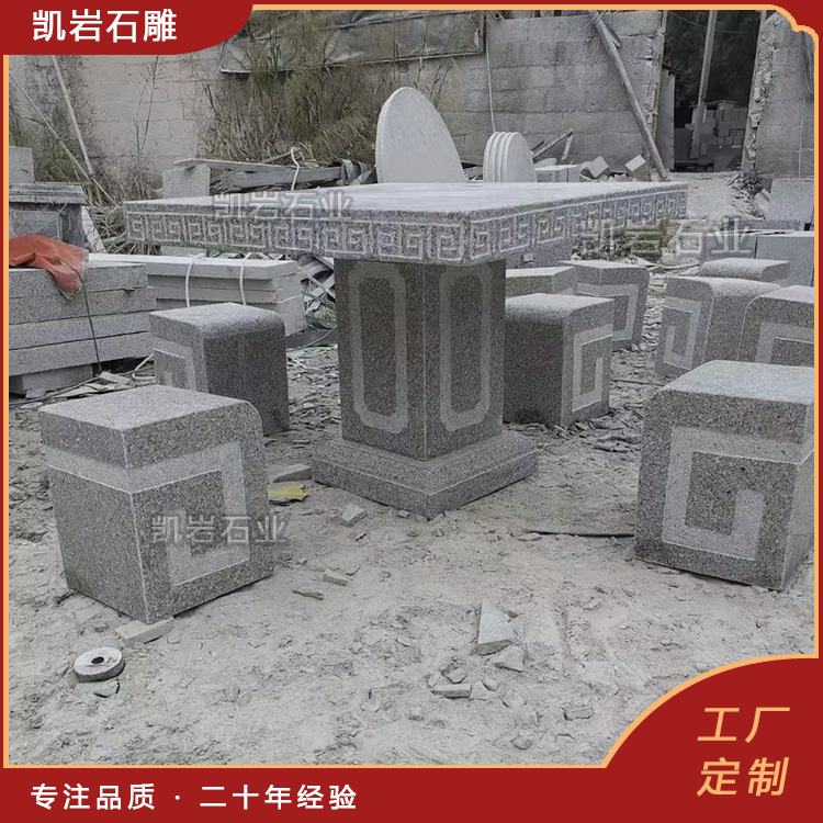 石雕桌椅,是天然石材与人工匠心的完美结合。它没有木质家具的娇贵,没有金属家具的冰冷,却有着岁月沉淀的沉稳与温润,既能承载人们休憩的惬意,也能彰显空间的格调与人文底蕴。 它作为园林景观与家居装饰中不可或缺的一部分,以其独特的艺术魅力和实用价值,深受人们的喜爱。 泉州凯岩石业制作的石雕桌椅,采用优质的石质精雕细琢而成,善用千年文化雕凿工艺的研究、传承、融合和发扬,使石雕作品承载艺术文化、体现更多社会价值。 【相关阅读】