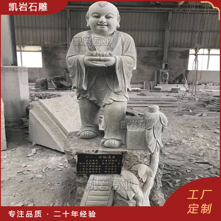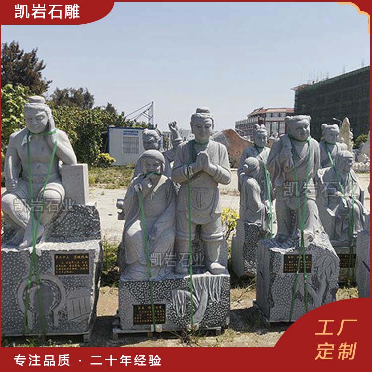 石雕二十四孝,是通过二十四个孝道故事来表现孝道精神。这些故事中的主人公都以各种方式表现了对父母的深深敬爱和孝顺。在石雕艺术中,二十四孝的故事常常被用于创作,石雕二十四孝就是一种常见的形式。以下是一些石雕二十四孝图片,供大家欣赏。 泉州凯岩石业制作的石雕二十四孝,采用优质的石质精雕细琢而成,善用千年文化雕凿工艺的研究、传承、融合和发扬,使石雕作品承载艺术文化、体现更多社会价值。 【相关阅读】