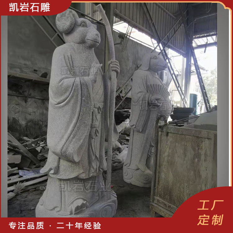 泉州凯岩石业制作的石雕十二生肖兽首人身,采用优质的石质精雕细琢而成,善用千年文化雕凿工艺的研究、传承、融合和发扬,使石雕作品承载艺术文化、体现更多社会价值。