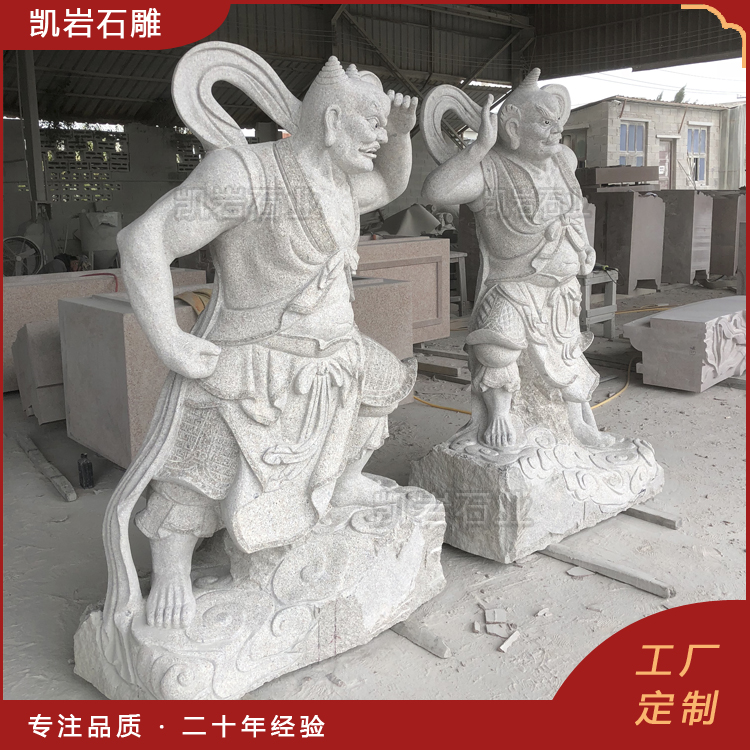 泉州凯岩石业制作的石雕千里眼顺风耳,采用优质的石质精雕细琢而成,善用千年文化雕凿工艺的研究、传承、融合和发扬,使石雕作品承载艺术文化、体现更多社会价值。 【相关阅读】
