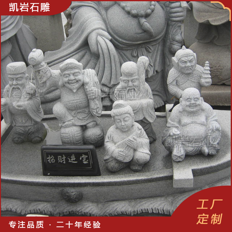 石雕七福神作为祥瑞的化身,其形象广泛应用于宗教供奉、园林装饰、工艺收藏乃至特色景观营造中。无论是安置于庭院、厅堂,还是作为公共艺术,石雕七福神都以恒久的材质,承载着对财富、智慧、健康、快乐等多元福祉的永恒追求,为观者带来心灵的慰藉与吉祥的祝福。以下介绍一些石雕七福神图片,供大家欣赏。 泉州凯岩石业制作的石雕七福神,采用优质的石质精雕细琢而成,善用千年文化雕凿工艺的研究、传承、融合和发扬,使石雕作品承载艺术文化、体现更多社会价值。 【相关阅读】