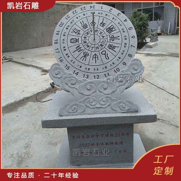作为校园文化符号,石雕日晷广泛应用于校园、广场、公园等场所,不仅具有装饰作用,还蕴含着人文历史的深远意义。它将天文智慧、工艺之美与文化情怀融为一体,跨越千年岁月,依然能让我们感受到古人对自然的敬畏、对时光的珍视。