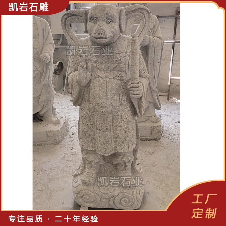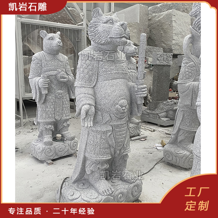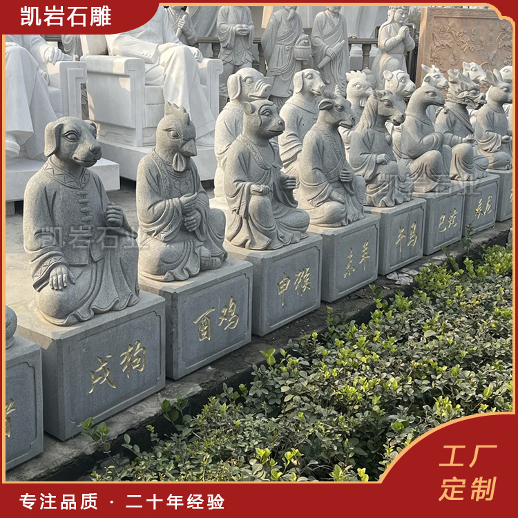 泉州凯岩石业制作的石雕十二生肖兽首人身,采用优质的石质精雕细琢而成,善用千年文化雕凿工艺的研究、传承、融合和发扬,使石雕作品承载艺术文化、体现更多社会价值。