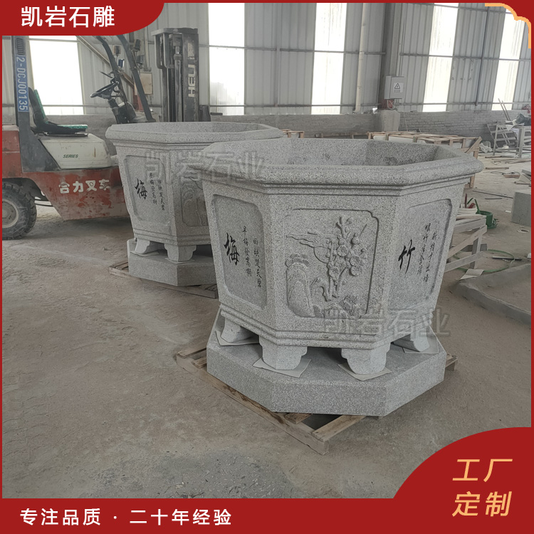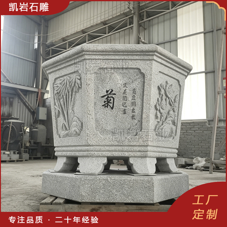泉州凯岩石业制作的石雕梅兰竹菊浮雕花钵,采用优质的石质精雕细琢而成,善用千年文化雕凿工艺的研究、传承、融合和发扬,使石雕作品承载艺术文化、体现更多社会价值。 【相关阅读】