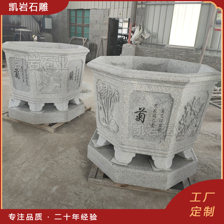 中式庭院必备:石雕梅兰竹菊浮雕花钵