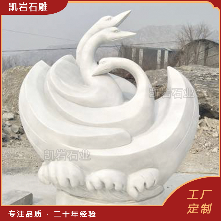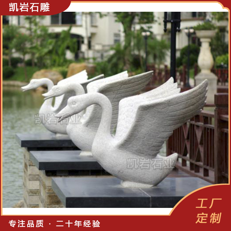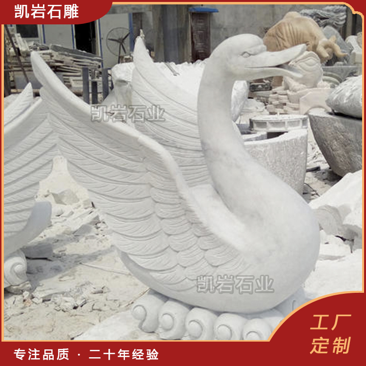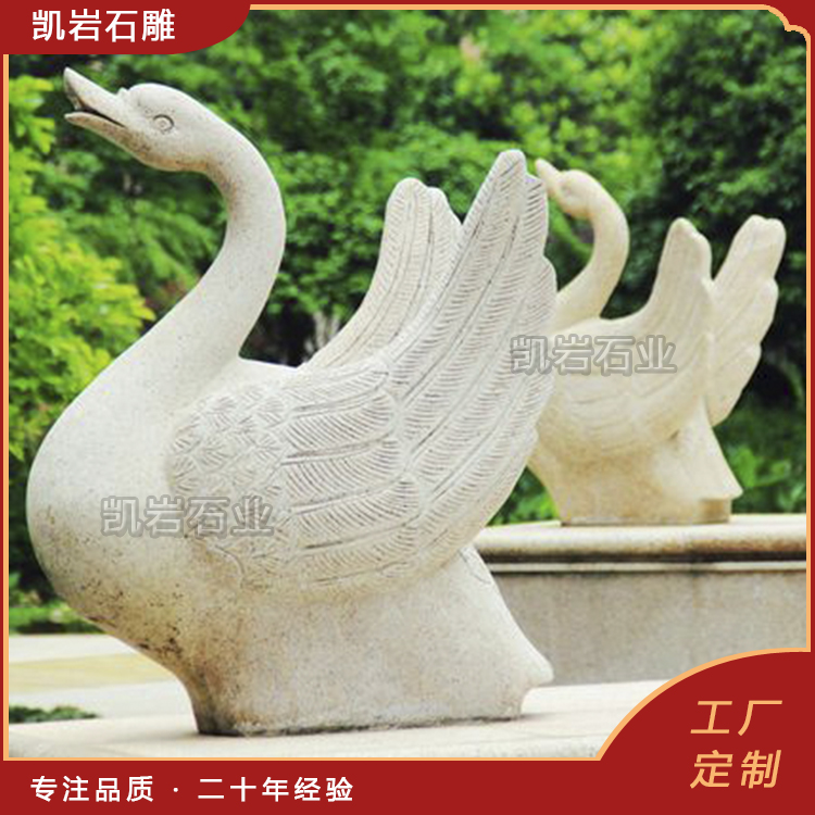 石雕天鹅广泛应用于园林景观、家居装饰、商业与公共空间、喷泉、水池边等场所,既能点缀环境,也能传递情感,成为连接艺术与生活的纽带。石雕天鹅承载着千年的文化底蕴,凝聚着匠人的匠心巧思,也寄托着人们对美好事物的向往。 泉州凯岩石业制作的石雕天鹅,采用优质的石质精雕细琢而成,善用千年文化雕凿工艺的研究、传承、融合和发扬,使石雕作品承载艺术文化、体现更多社会价值。【相关阅读】