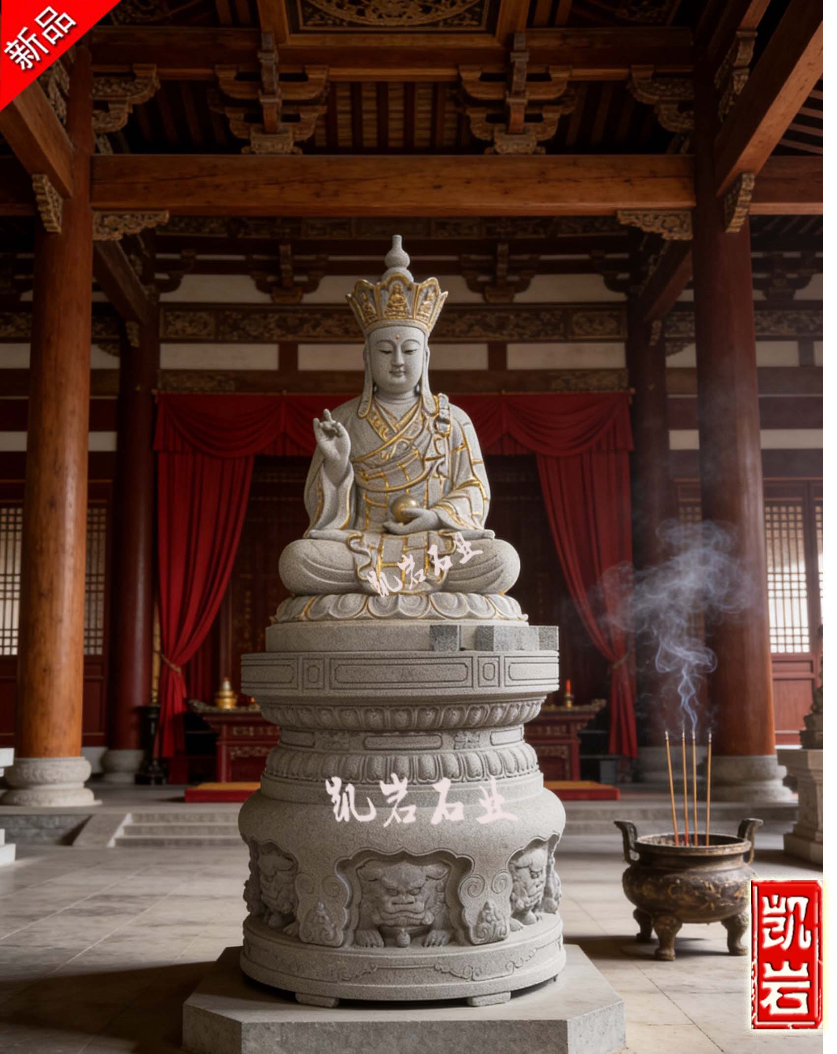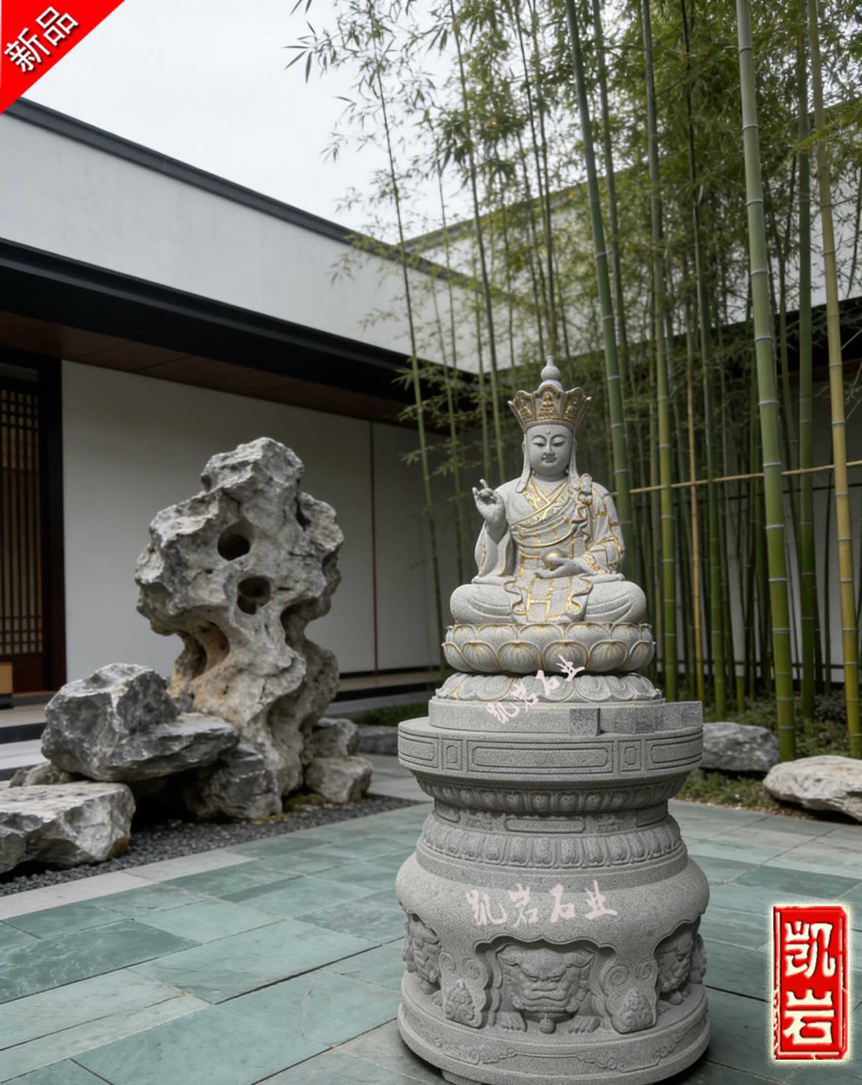 地藏菩萨手持锡杖,振开地狱之门;掌托明珠,照亮轮回之路。将其供奉于寺院之中,不仅为殿堂增添一份肃穆与安定,更时时提醒众生“众生度尽,方证菩提”的大愿精神。其稳重的形态与寺院古朴的建筑相得益彰,营造出宁静而充满力量的修行氛围。 【相关产品】