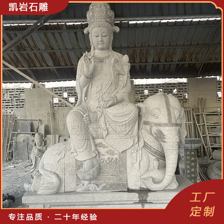 石雕文殊普贤菩萨,作为佛教文化中的重要象征,承载着深厚的信仰与智慧。石雕文殊菩萨,是佛教中的智慧菩萨,他以深邃的智慧和卓越的智慧创造力而著称。他是释迦牟尼佛的左胁侍,其形象通常为骑狮子,手持如意或莲花,头戴宝冠,身饰璎珞。 石雕普贤菩萨,又称为行愿菩萨,以其广大的慈悲心和普渡众生的愿力而闻名。他是释迦牟尼佛的右胁侍,常手持如意宝珠,骑乘六牙白象,比喻以菩提心愿力遍满一切众生。普贤...