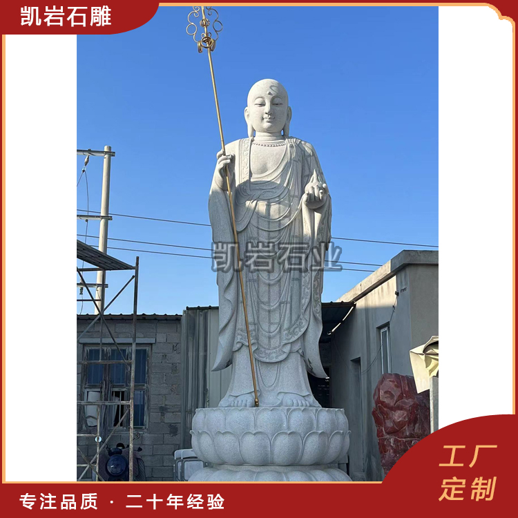 石雕地藏王作为佛教四大菩萨之一,广泛受到信众的崇拜和敬仰。他以其庄严神圣的形象和精湛的雕刻技艺,成为了佛教艺术中的重要组成部分。以下是一些石雕地藏王图片,供大家欣赏。 石雕地藏王雕像通常都是庄严肃穆的,他手持锡杖一手,另一手则执莲花,或宝珠等。常常被摆放在寺庙广场、户外庭院等场所。石雕地藏王不仅是宗教精神的载体,更是融合工艺美学与信仰文化的艺术杰作。 泉州凯岩石业制作的石雕地...