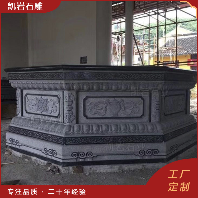 在寺庙建筑中,石雕须弥座作为一种经典元素,既是一种艺术装饰,又是佛教文化的象征。通过其独特的形式和深厚的内涵,向世人展示了古代匠人的智慧与信徒的虔诚。成为文化交流与宗教体验的重要桥梁。通常由数块巨石堆叠而成,雕刻精美,散发出神秘与庄严的氛围。下面介绍一些石雕须弥座的图片,供大家欣赏! 泉州凯岩石业制作的石雕须弥座,采用优质的石质精雕细琢而成,善用千年文化雕凿工艺的研究、传承、融...