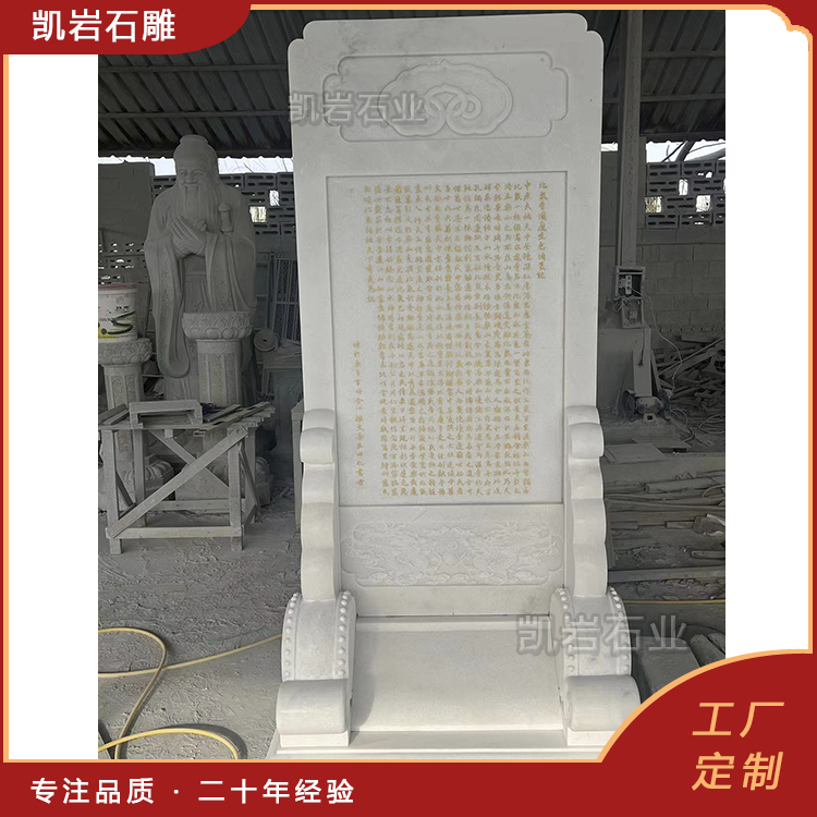 刻字石碑是一种具有深厚文化内涵和实用价值的石材制品,它以天然石材为基材,通过精湛的雕刻工艺,将文字、图案或符号等永久性地刻于石面之上,既体现了石材的坚固耐用,又展现了雕刻艺术的精美细腻。 刻字石碑承担着传承与纪念的使命。陵园墓碑、景区纪事碑、祠堂功德碑、校园纪念碑、宗祠碑记……它们以坚硬的石材守护记忆,用隽永的文字传递精神。从庙...