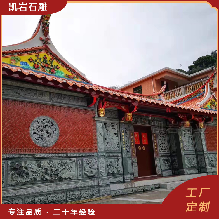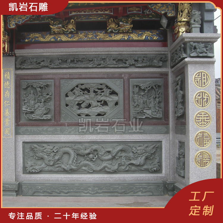 泉州凯岩石业制作的石雕祠堂浮雕,采用优质的石质精雕细琢而成,善用千年文化雕凿工艺的研究、传承、融合和发扬,使石雕作品承载艺术文化、体现更多社会价值。