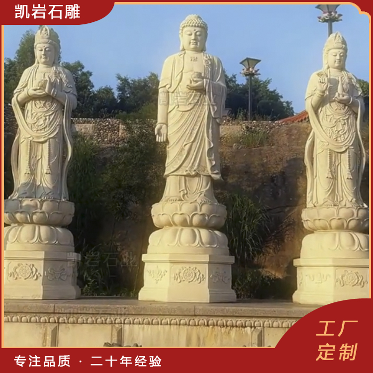 石雕西方三圣,他们分别是阿弥陀佛和观世音菩萨、大势至菩萨。阿弥陀佛作为西方极乐世界的教主,引领众生走向光明。而观世音菩萨和大势至菩萨则是他的两大胁侍,如同他的左右手,协助他教化众生。以下是一些石雕西方三圣图片,供大家欣赏。