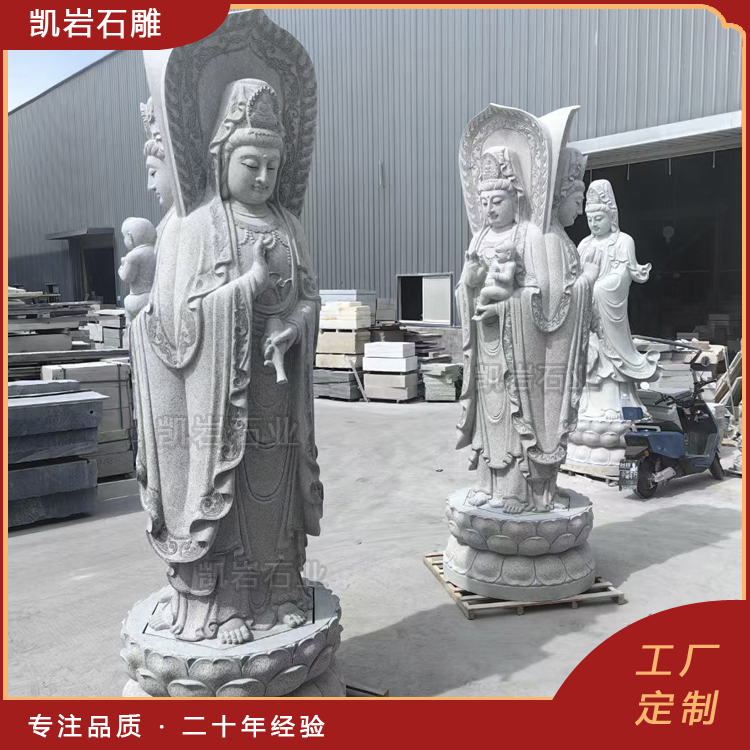 泉州凯岩石业制作的石雕三面观音,采用优质的石质精雕细琢而成,善用千年文化雕凿工艺的研究、传承、融合和发扬,使石雕作品承载艺术文化、体现更多社会价值。