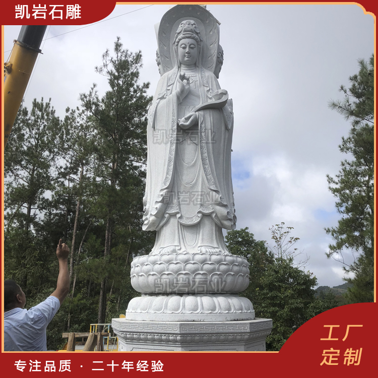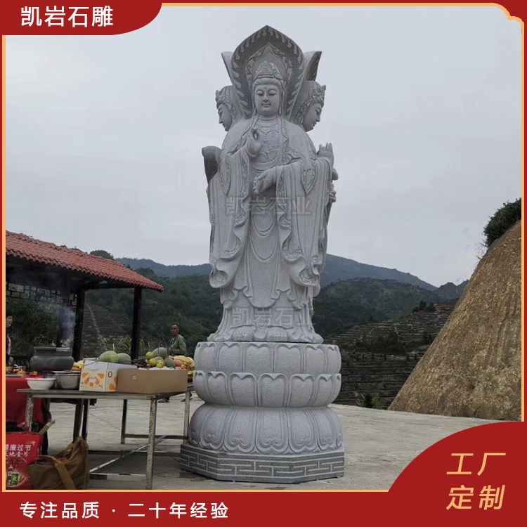 泉州凯岩石业制作的石雕三面观音,采用优质的石质精雕细琢而成,善用千年文化雕凿工艺的研究、传承、融合和发扬,使石雕作品承载艺术文化、体现更多社会价值。