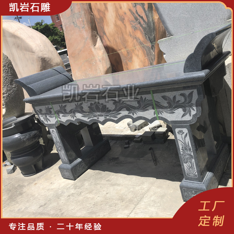 泉州凯岩石业制作的石雕供桌,采用优质的石质精雕细琢而成,善用千年文化雕凿工艺的研究、传承、融合和发扬,使石雕作品承载艺术文化、体现更多社会价值。 【相关阅读】