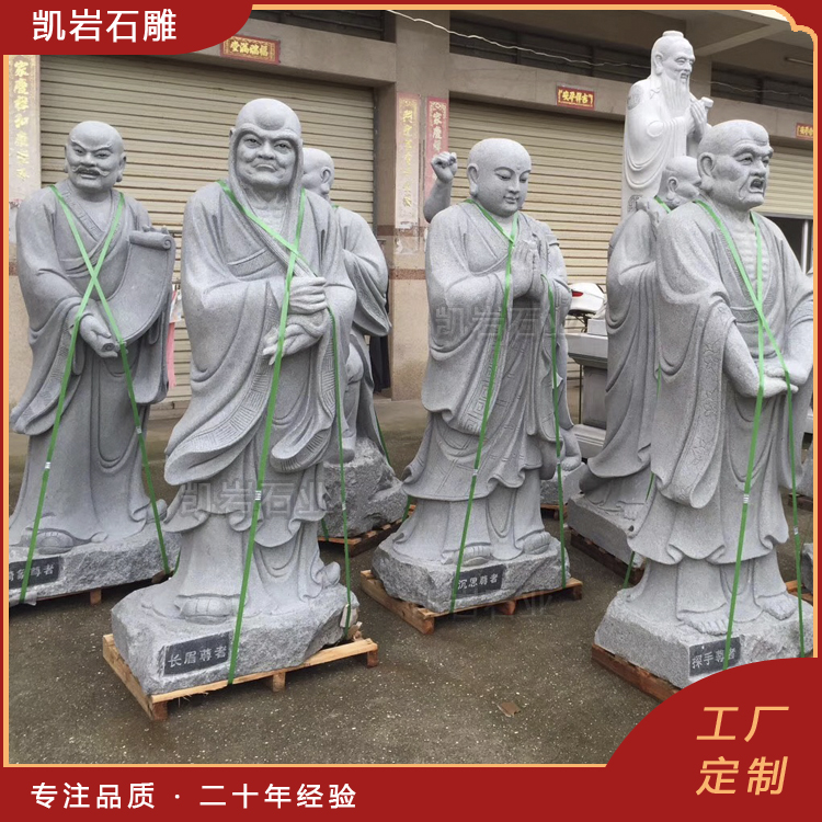 泉州凯岩石业制作的石雕十八罗汉,采用优质的石质精雕细琢而成,善用千年文化雕凿工艺的研究、传承、融合和发扬,使石雕作品承载艺术文化、体现更多社会价值。 【相关阅读】
