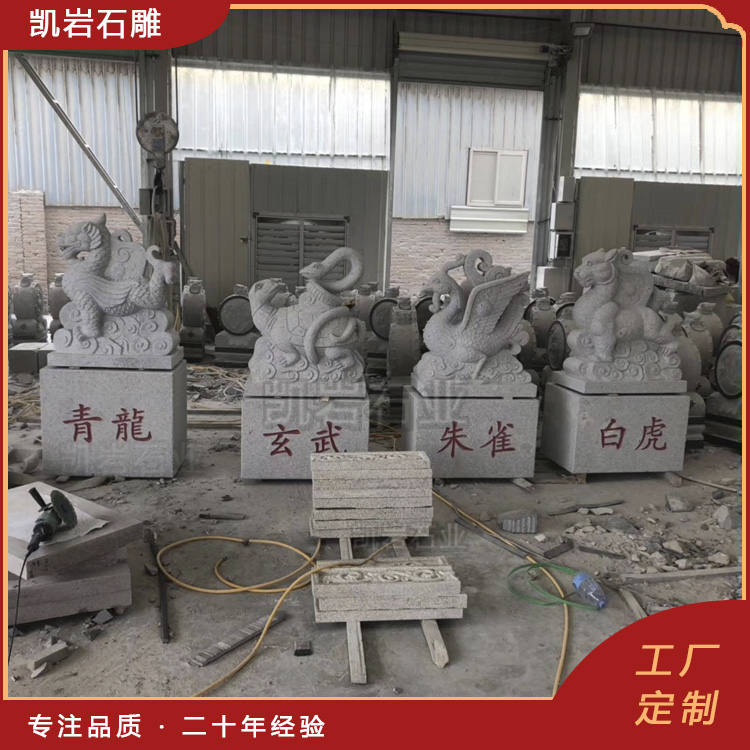 泉州凯岩石业制作的石雕青龙白虎朱雀玄武,采用优质的石质精雕细琢而成,善用千年文化雕凿工艺的研究、传承、融合和发扬,使石雕作品承载艺术文化、体现更多社会价值。