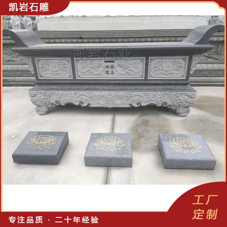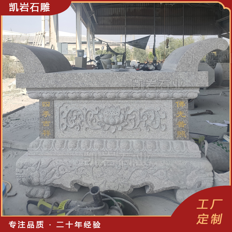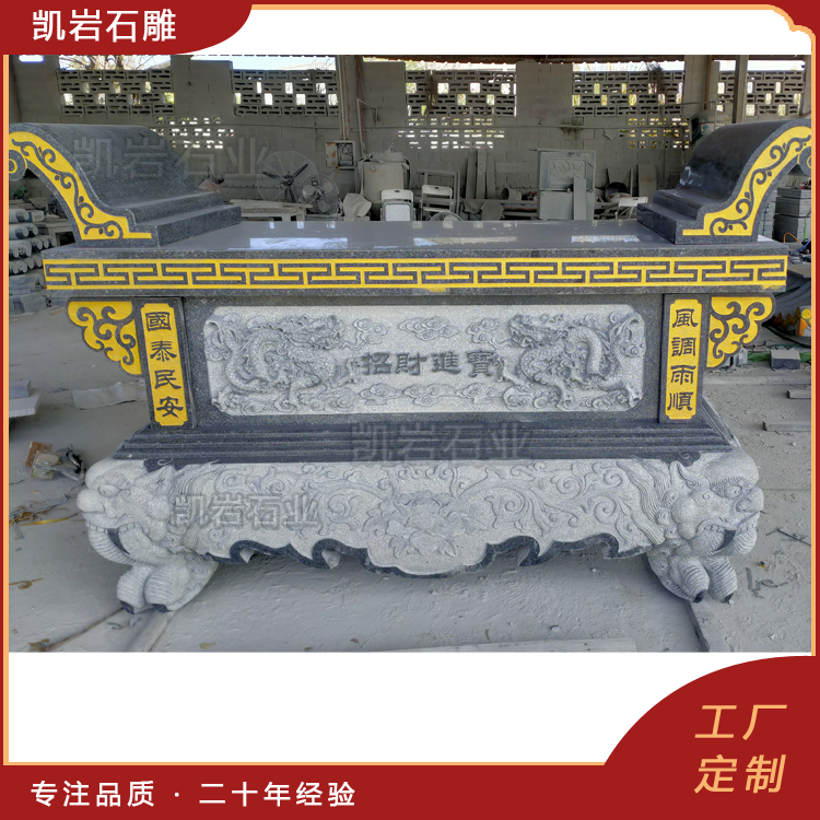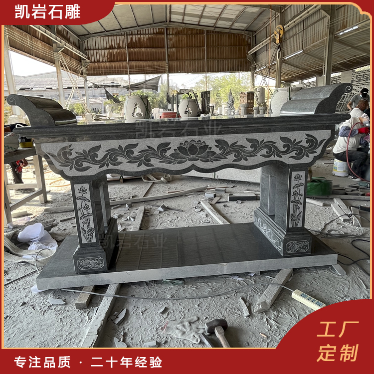泉州凯岩石业制作的石雕供桌,采用优质的石质精雕细琢而成,善用千年文化雕凿工艺的研究、传承、融合和发扬,使石雕作品承载艺术文化、体现更多社会价值。 【相关阅读】