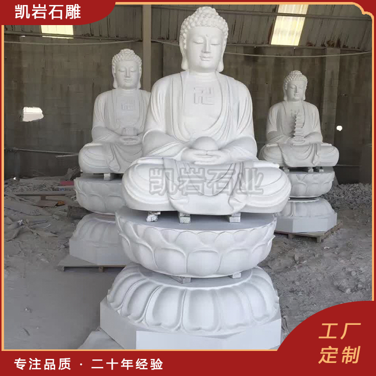 石雕三宝佛坐像 寺庙佛像雕塑摆件