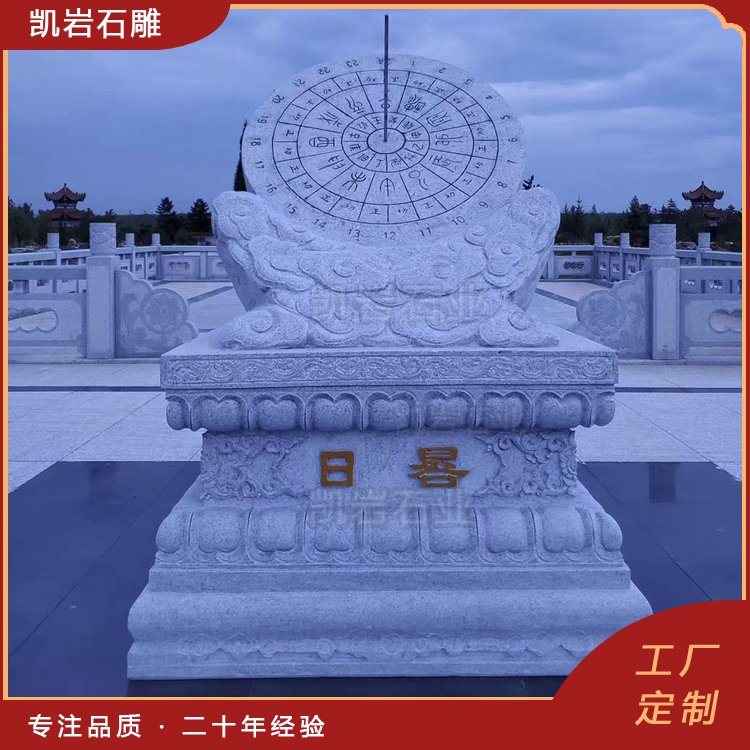 泉州凯岩石业制作的石雕日晷,采用优质的石质精雕细琢而成,善用千年文化雕凿工艺的研究、传承、融合和发扬,使石雕作品承载艺术文化、体现更多社会价值。 【相关阅读】