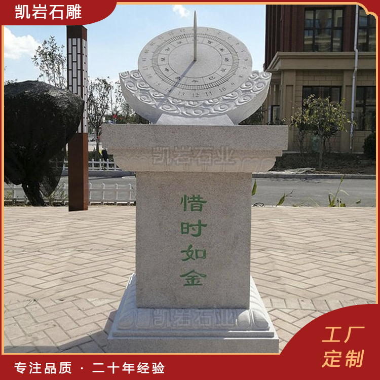 泉州凯岩石业制作的石雕日晷,采用优质的石质精雕细琢而成,善用千年文化雕凿工艺的研究、传承、融合和发扬,使石雕作品承载艺术文化、体现更多社会价值。 【相关阅读】
