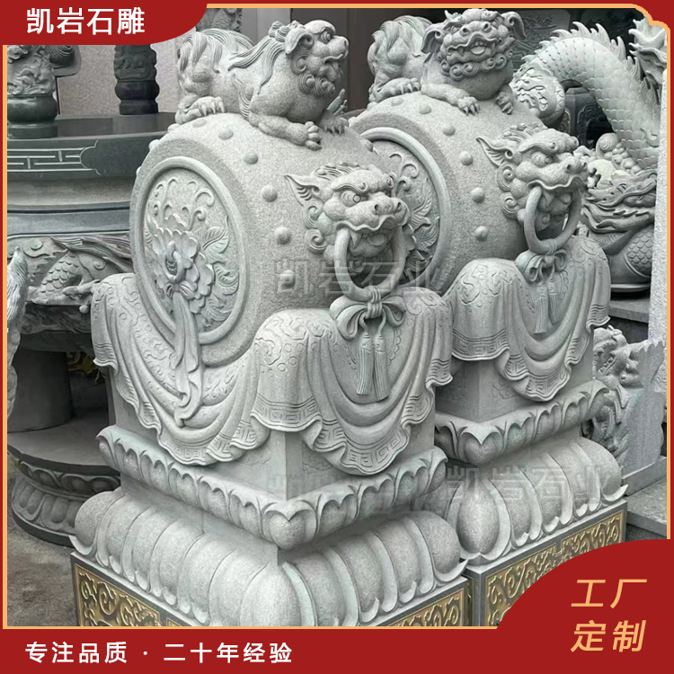 泉州凯岩石业制作的石雕抱鼓石,采用优质的石质精雕细琢而成,善用千年文化雕凿工艺的研究、传承、融合和发扬,使石雕作品承载艺术文化、体现更多社会价值。