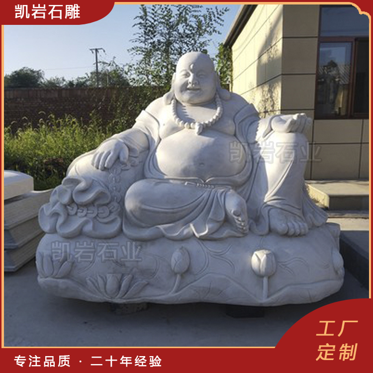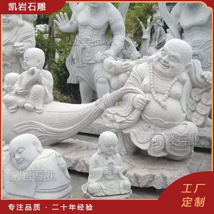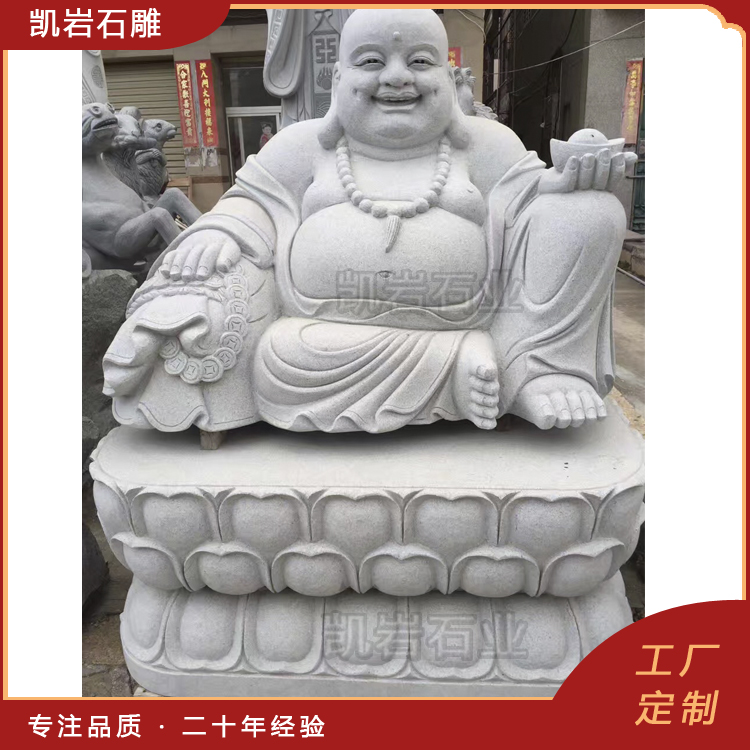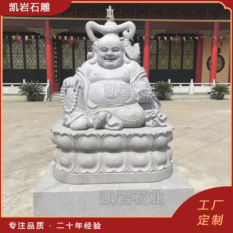 石雕弥勒佛作为佛教文化的重要象征,常常出现在寺庙、公共场所以及文化景区中。其形象通常被描绘为和蔼慈祥,给人以安宁、慈悲之感。以下是一些石雕弥勒佛图片,供大家欣赏。 石雕弥勒佛是采用天然石材雕刻而成,其样式十分丰富,有佛珠弥勒佛、五子戏弥勒、如意弥勒佛、元宝弥勒佛等造型。每一尊石雕弥勒佛都承载着信徒们对智慧、慈悲和祥和的向往,也是他们心灵寄托的具体体现。