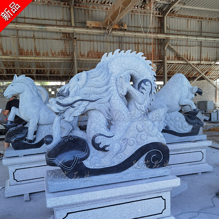 石雕十二生肖又称十二年兽,是由自然界的十二种动物组成,主要的作用是用来记载年历。这十二种动物分别为子鼠、丑牛、寅虎、卯兔、辰龙、巳蛇、午马、未羊、申猴、酉鸡、戌狗、亥猪。每一种生肖动物都有着它各自的美好寓意。