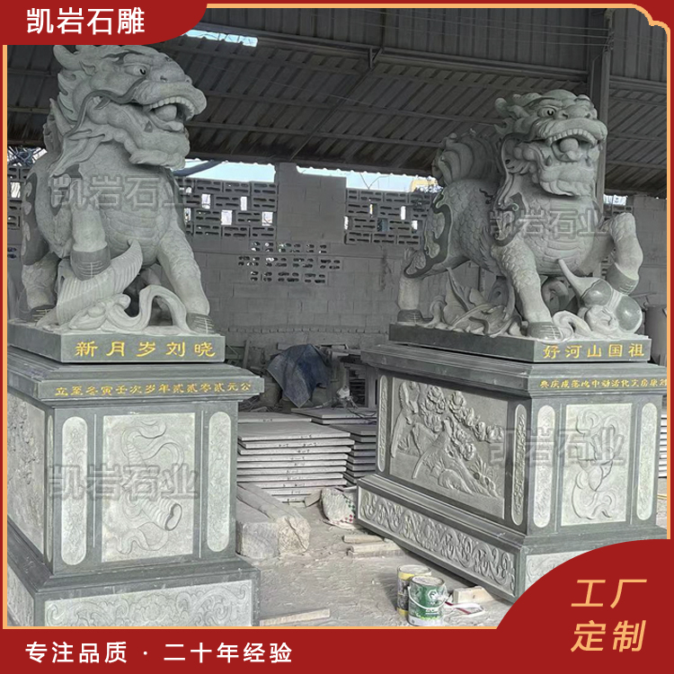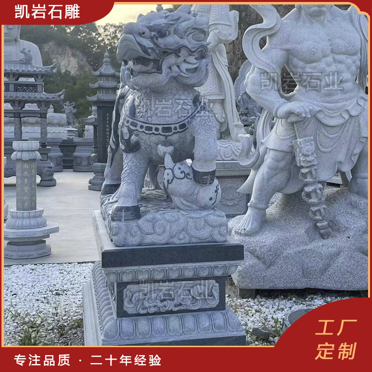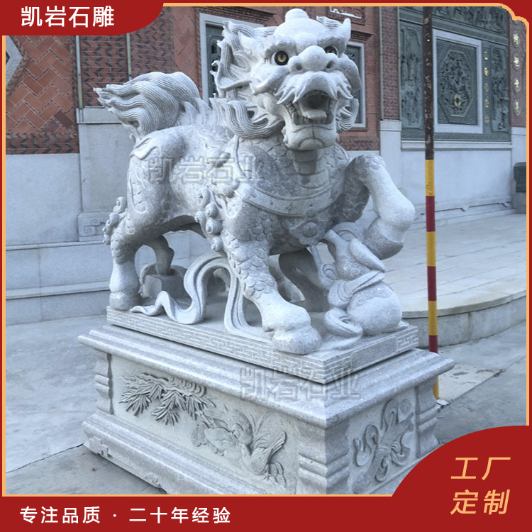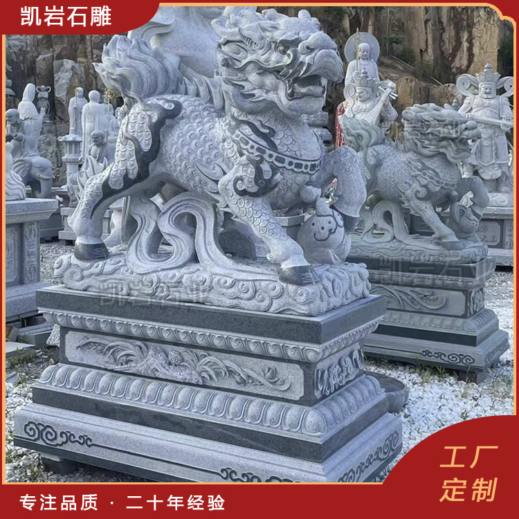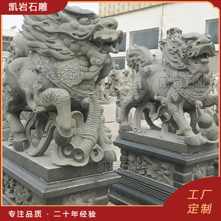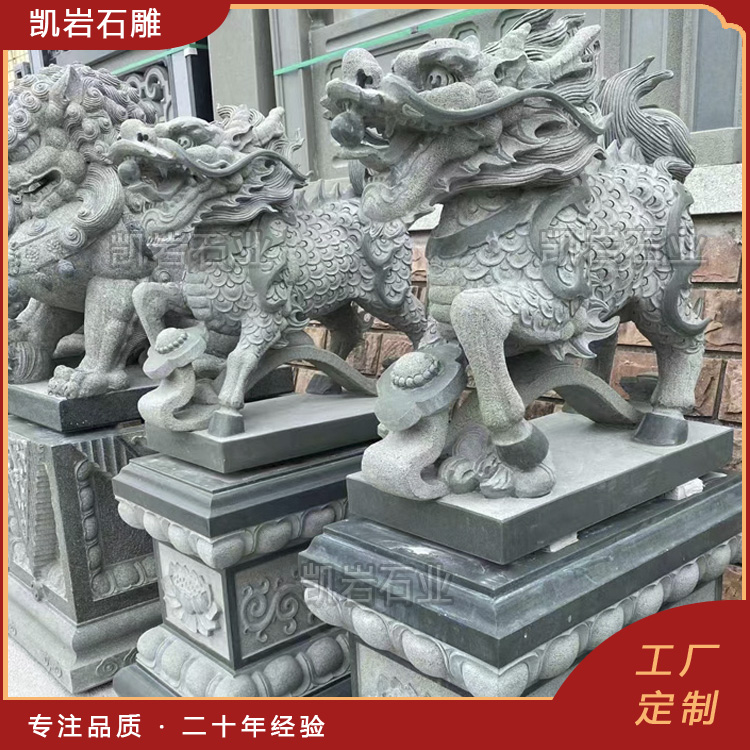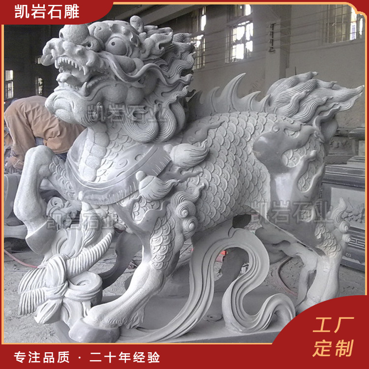 石雕麒麟是采用天然石材雕刻而成,其造型多样,包括站立式、行走式、蹲坐式、背负式和组合式等。每种造型都展现了石雕麒麟的独特魅力和不同寓意。这些雕塑不仅是匠人们精湛技艺的展现,更是传统文化与现代审美的完美结合。 泉州凯岩石业制作的石雕麒麟,采用优质的石质精雕细琢而成,善用千年文化雕凿工艺的研究、传承、融合和发扬,使石雕作品承载艺术文化、体现更多社会价值。