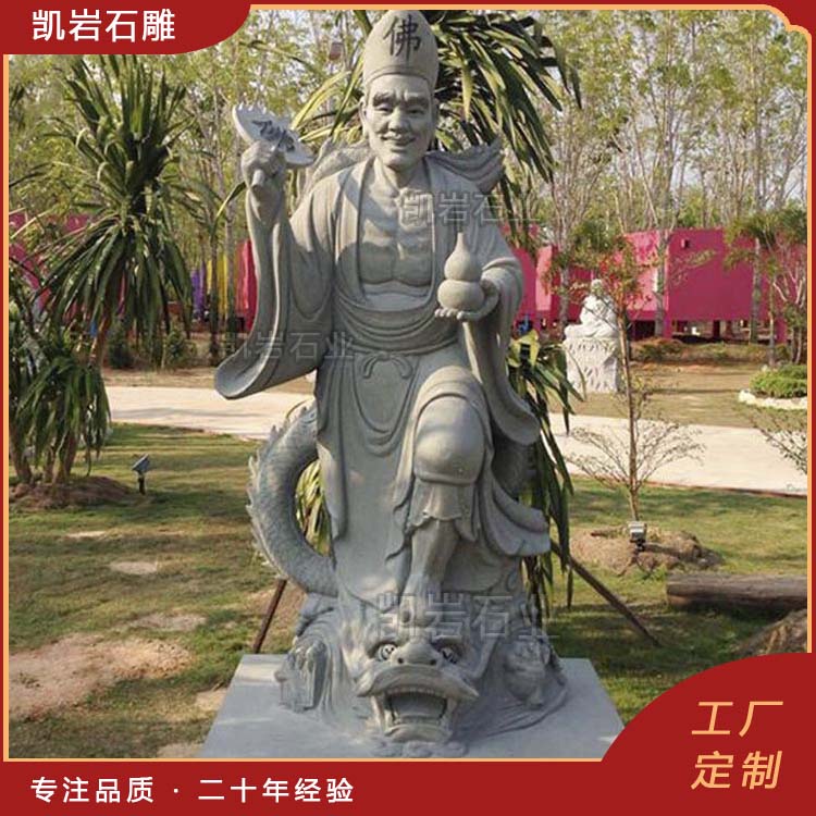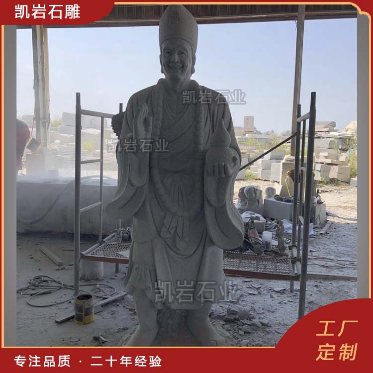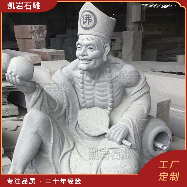 石雕济公作为民间传说中的“活佛”,象征着救苦救难、普度众生。石雕济公雕塑不仅具有观赏价值,还寄托了人们对平安、幸福的美好愿望,常被放置在寺庙、园林,作为祈福的象征。石雕济公塑像在制作上的石材有很多,如花岗岩、大理石、青石等。不同石材的石雕济公都具有不同的质感和艺术效果。以下是一些石雕济公图片,供大家欣赏。 泉州凯岩石业制作的石雕济公,采用优质的石质精雕细琢而成,善用千年文化雕凿工艺的研究、传承、融合和发扬,使石雕作品承载艺术文化、体现更多社会价值。 【相关阅读】